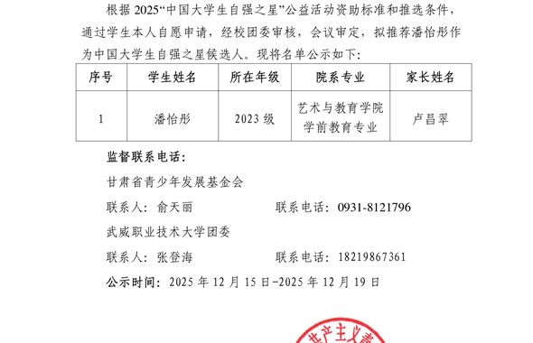 10月12日下午,中國(guó)科學(xué)院上海應(yīng)用物理研究所黨委書記、副所長(zhǎng)李晴暖研究員,受邀做客武威職業(yè)技…[詳細(xì)]更新時(shí)間:2025-10-26