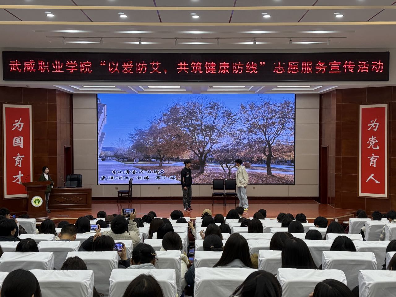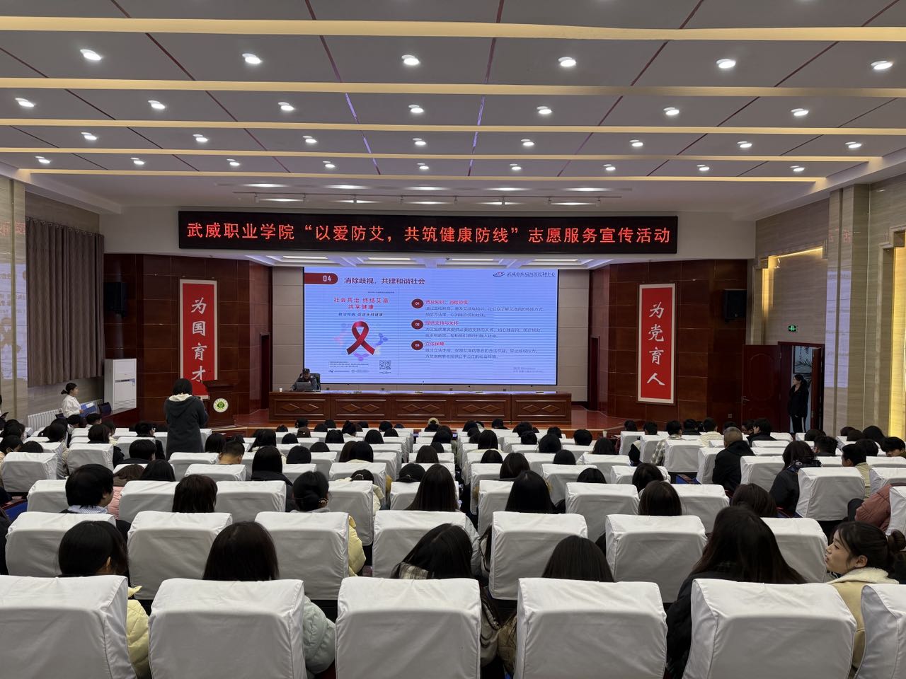 12月1日是第37個(gè)“世界艾滋病日”。為普及艾滋病防治知識(shí),進(jìn)一步增強(qiáng)廣大青年學(xué)子的自我防護(hù)意識(shí)與能力,促進(jìn)身心健康發(fā)展,12月1日下午,校團(tuán)委聯(lián)合護(hù)理學(xué)院邀請(qǐng)武威市疾控中心在學(xué)校菁英廳開展主題為“以愛防艾,共筑健康防線”主題宣傳活動(dòng),吸引了200余名師生積極參與。