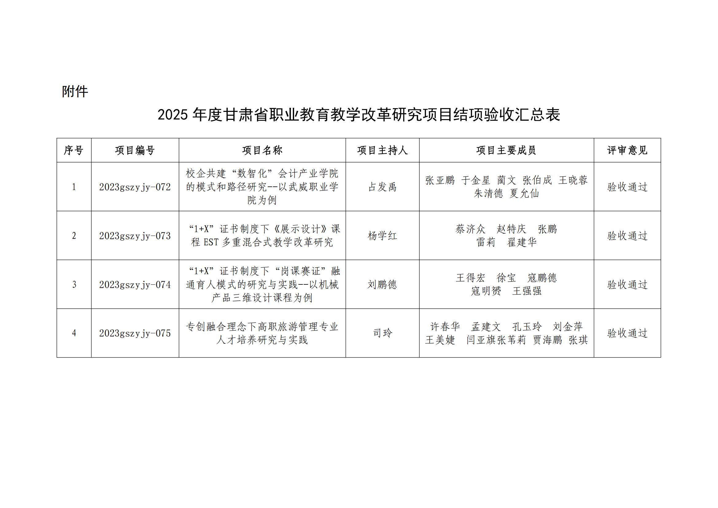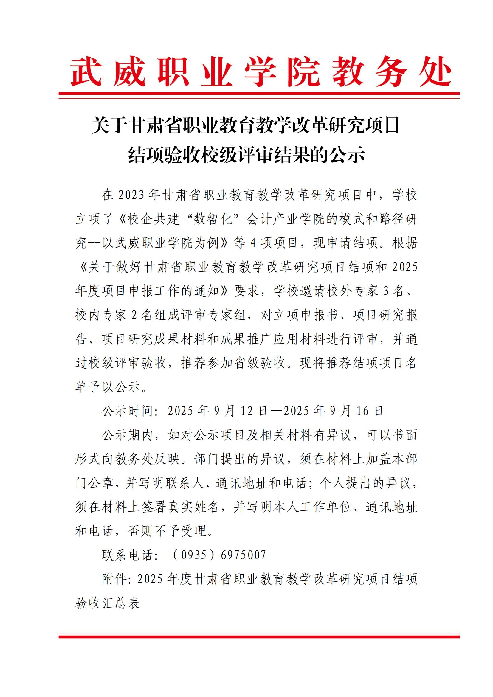 關于甘肅省職業(yè)教育教學改革研究項目結項驗收校級評審結果的公示