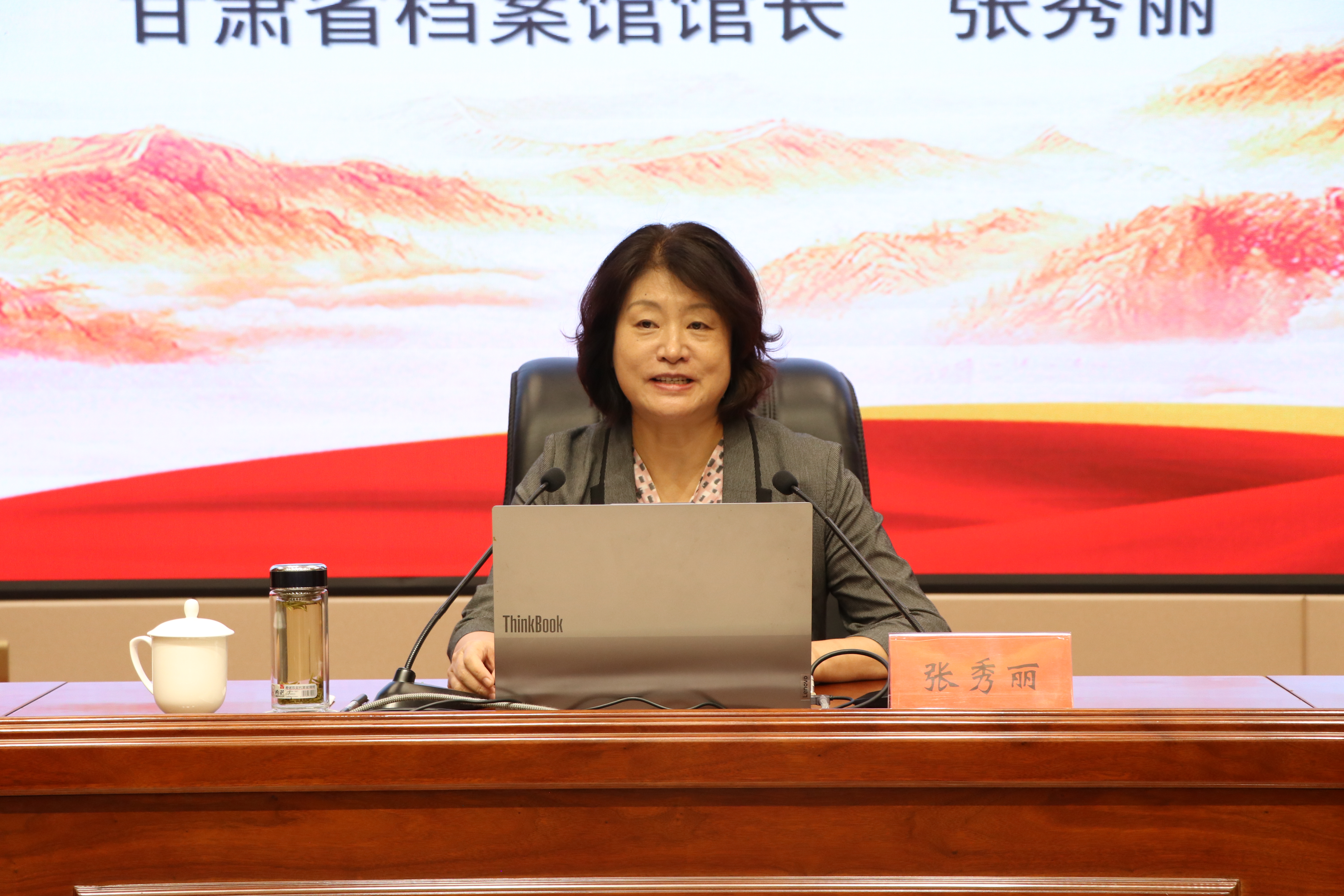 張秀麗結(jié)合自身從事檔案管理和文化研究的豐富經(jīng)驗,從檔案“存史、資政、育人”根本任務(wù)出發(fā),通過大量珍貴檔案文獻和歷史案例,系統(tǒng)闡述了檔案在記錄民族苦難輝煌、服務(wù)當(dāng)代治國理政、培育時代新人中的重要作用。報告中,她以館藏漢代簡牘、革命烈士叢德滋00001號烈屬證、民勤治沙檔案、甘肅地震檔案等一批具有歷史代表性和地域特色的檔案為載體,帶領(lǐng)師生穿越時空,感受中華民族生生不息的精神力量,深刻解讀“勿忘昨天的苦難輝煌,無愧今天的使命擔(dān)當(dāng),不負明天的偉大夢想”的時代內(nèi)涵。