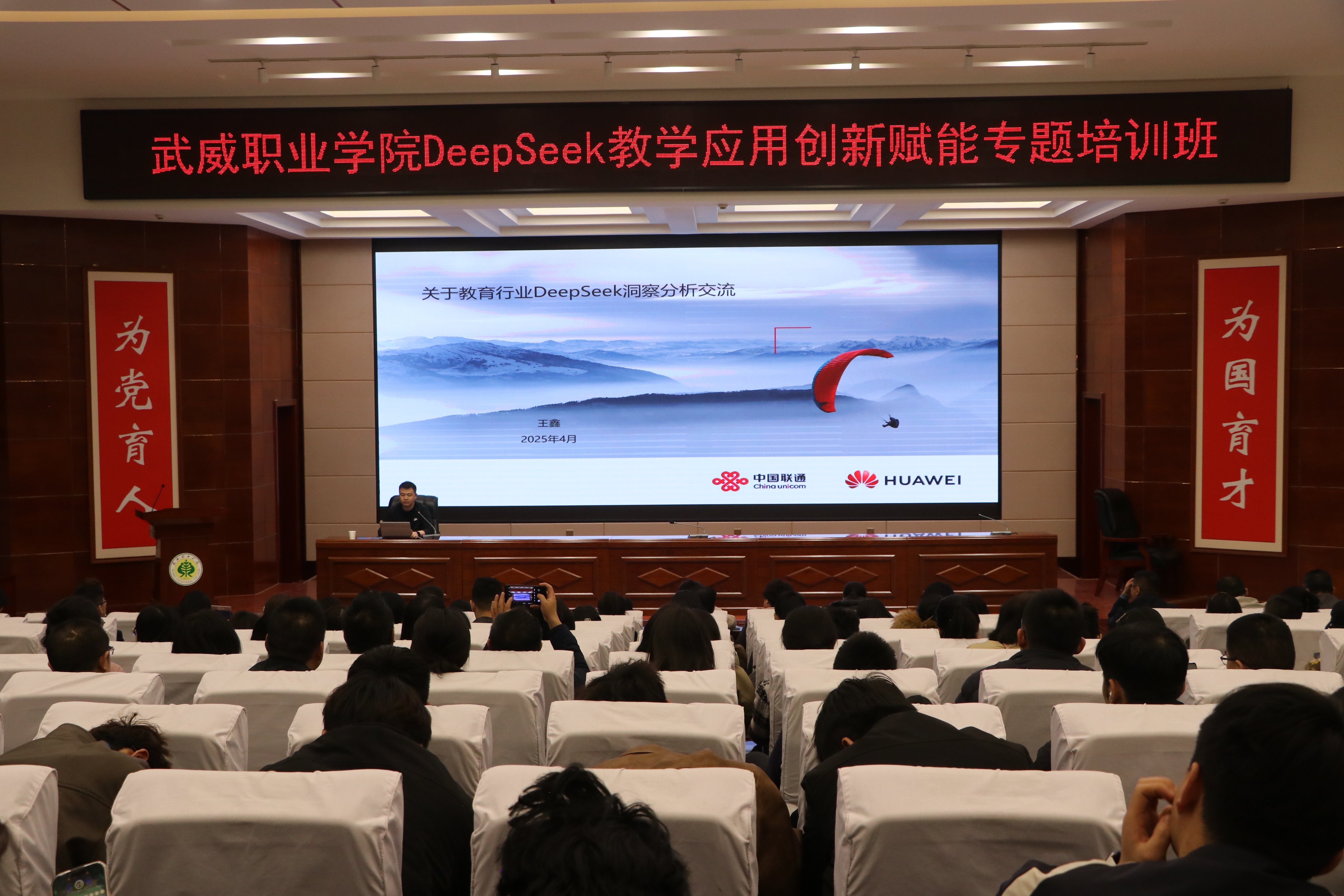 為深入探討DeepSeek技術(shù)的應(yīng)用,助力學(xué)校師生運(yùn)用AI工具進(jìn)行教學(xué)實(shí)踐、智慧課程建設(shè)與科學(xué)研究工作,為教學(xué)改革與教學(xué)創(chuàng)新實(shí)踐筑基賦能。4月3日,學(xué)校邀請(qǐng)聯(lián)通數(shù)據(jù)智能有限公司教育行業(yè)解決方案專家包紅梅和華為技術(shù)有限公司智算產(chǎn)業(yè)AI架構(gòu)師王鑫,舉辦了“DeepSeek教學(xué)應(yīng)用創(chuàng)新賦能”專題講座。講座由網(wǎng)絡(luò)安全與信息技術(shù)中心負(fù)責(zé)人史子新主持,學(xué)校各部門、二級(jí)學(xué)院教師代表,信息技術(shù)學(xué)院學(xué)生代表共計(jì)220人參加。