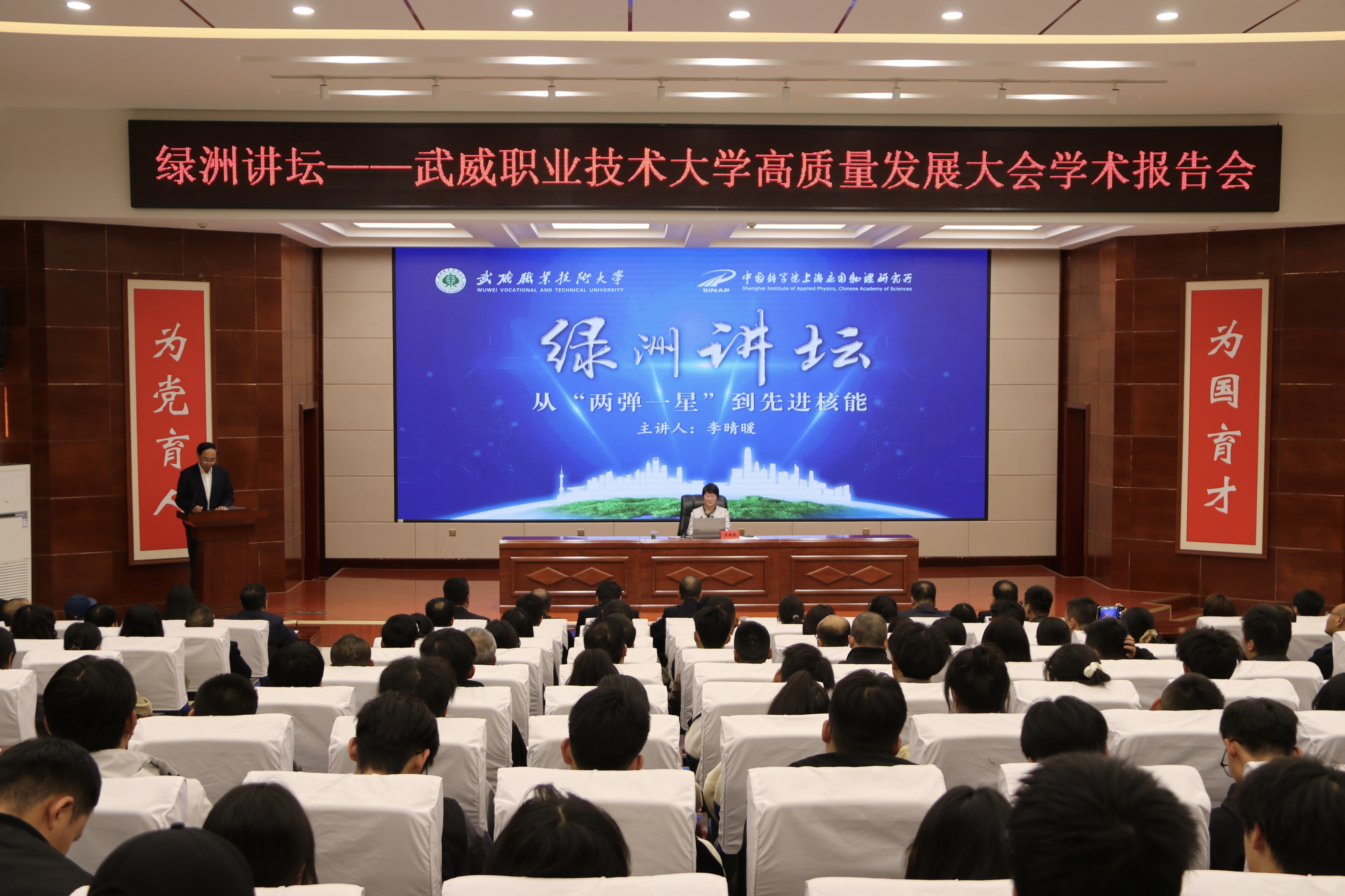 10月12日下午,中國科學(xué)院上海應(yīng)用物理研究所黨委書記、副所長李晴暖研究員,受邀做客武威職業(yè)技術(shù)大學(xué)“綠洲講壇”,以《從“兩彈一星”到先進(jìn)核能》為題,為該校220余名師生代表帶來專題學(xué)術(shù)報告。