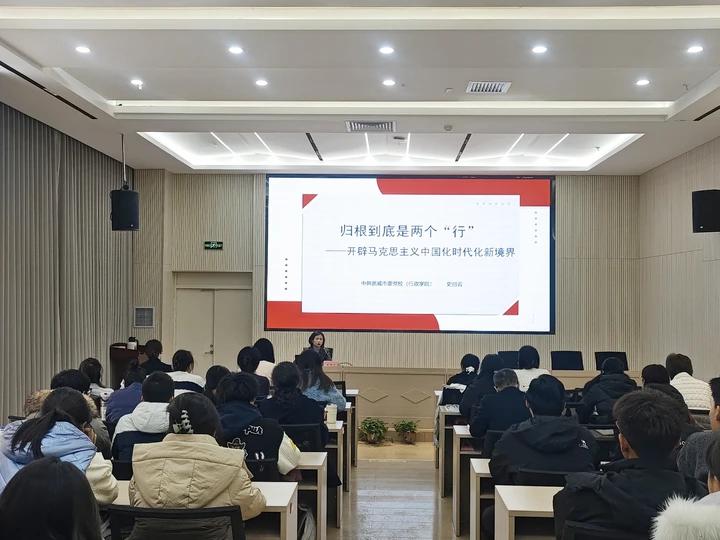 教學(xué)觀摩活動以“歸根到底是兩個行——開辟馬克思主義中國化時代化新境界”為題,從“真理之光:馬克思主義行”“實(shí)踐之行:中國化時代化的馬克思主義行”“復(fù)興之路:不斷開辟馬克思主義中國化時代化新境界”三部分展開講述,她從“兩個行”這一重大論斷的理論溯源、時代背景與核心要義切入,結(jié)合新時代以來的偉大實(shí)踐與歷史性變革,深刻揭示了中國共產(chǎn)黨為什么能、中國特色社會主義為什么好的理論邏輯與實(shí)踐密碼,生動回答中國之問、世界之問、人民之問、時代之問,實(shí)現(xiàn)了馬克思主義中國化時代化新的飛躍。她強(qiáng)調(diào),“兩個行”是相互貫通、有機(jī)統(tǒng)一的整體,開辟馬克思主義中國化時代化新境界,必須始終堅(jiān)持“兩個行”的根本遵循,在實(shí)踐中不斷推進(jìn)理論創(chuàng)新,并用發(fā)展著的理論指導(dǎo)新的實(shí)踐。