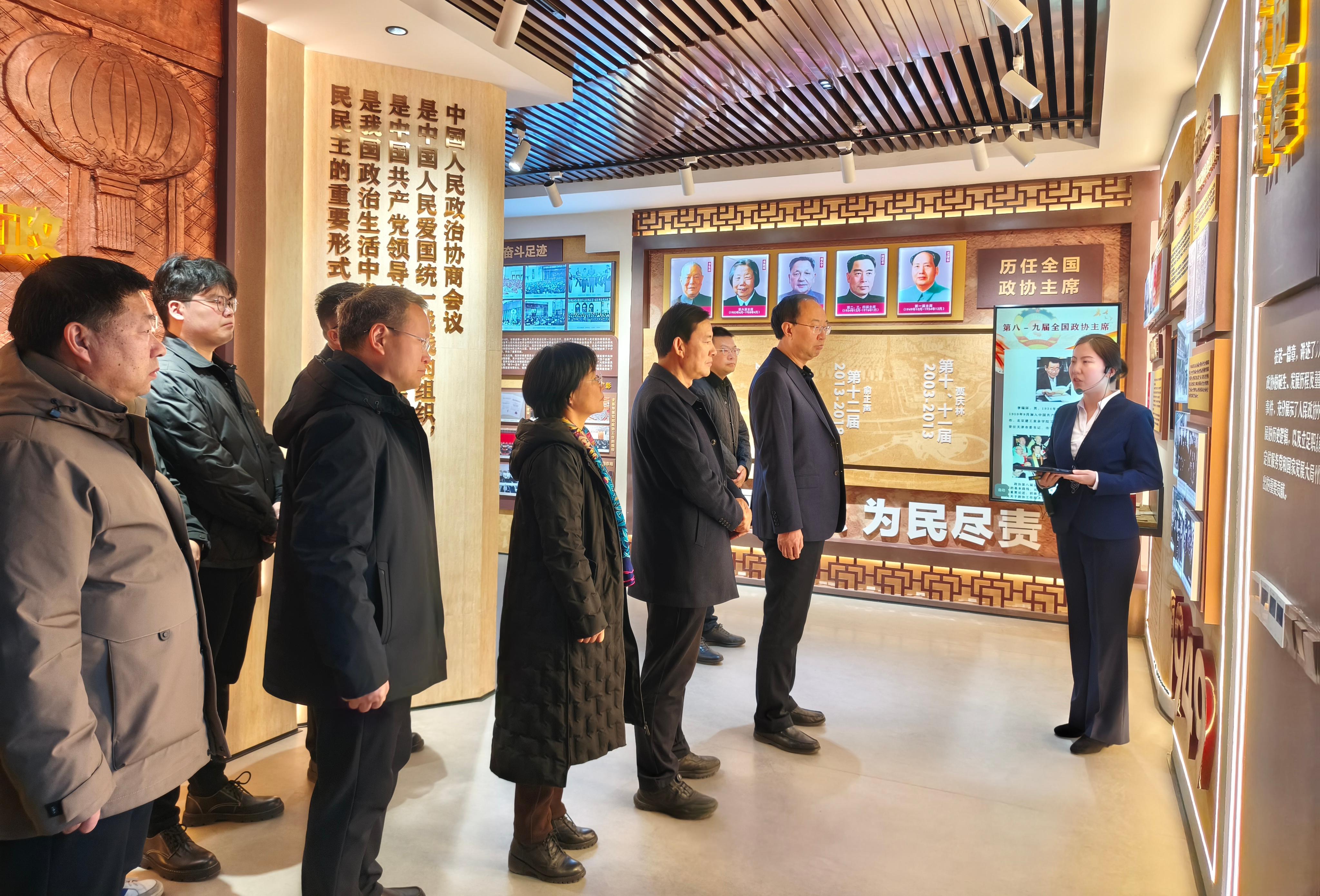 在講解員的引導(dǎo)下,大家依次參觀了政協(xié)發(fā)展成就展示廳、文史資料室等主要展區(qū),通過觀看珍貴的歷史文獻、詳實的檔案資料和生動的圖片影像,系統(tǒng)回顧了人民政協(xié)在中國共產(chǎn)黨領(lǐng)導(dǎo)下走過的光輝歷程和積累的寶貴經(jīng)驗,深入了解了武威市政協(xié)在推進政治協(xié)商、民主監(jiān)督、參政議政等方面的具體實踐與積極成效。參觀過程中,校領(lǐng)導(dǎo)還與市政協(xié)相關(guān)負責同志就文史館的規(guī)劃建設(shè)、展陳設(shè)計等工作進行了深入交流。