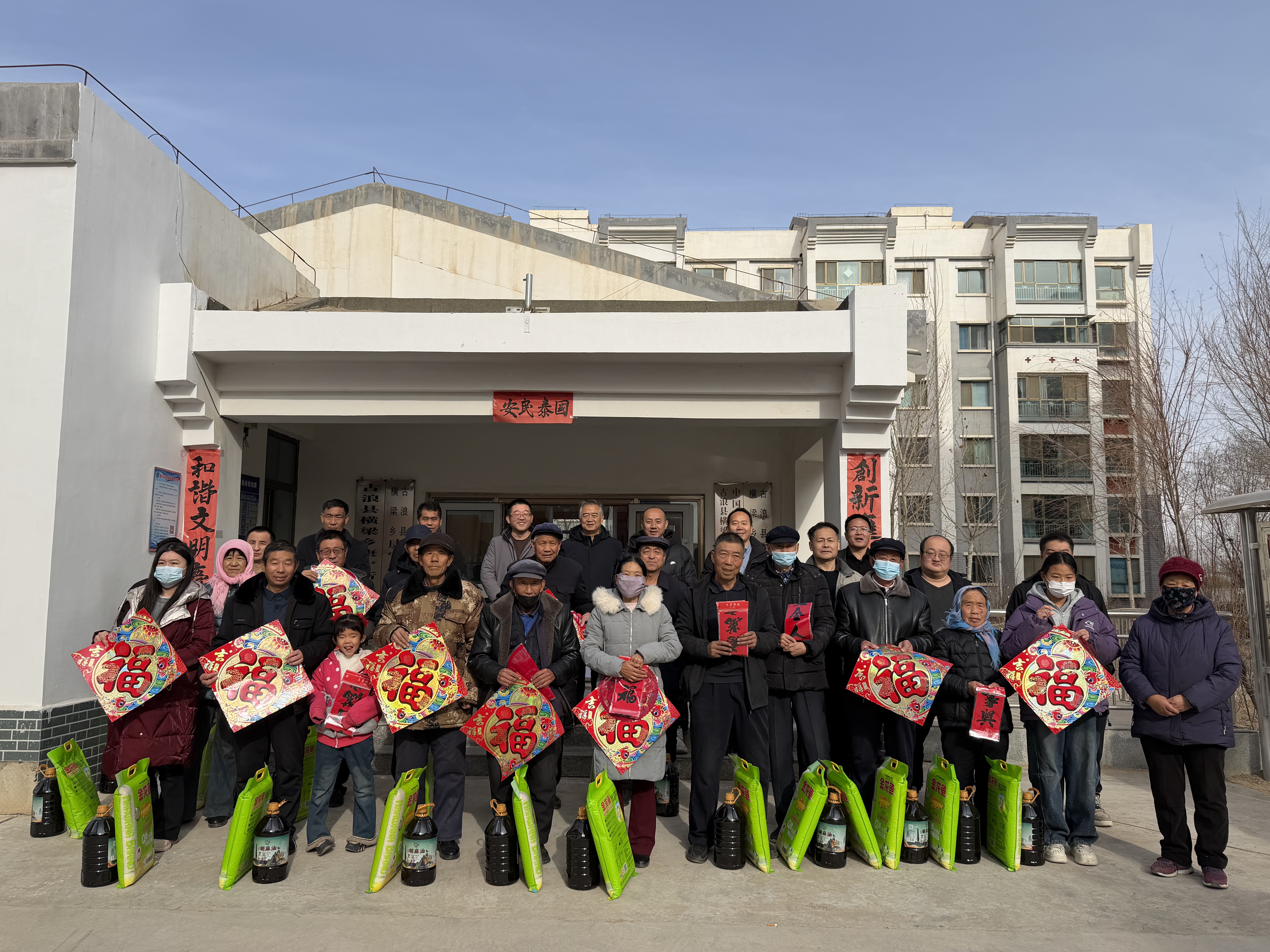 1月19日,學校在幫扶點古浪縣橫梁鄉(xiāng)康寧新村、幸福新村開展春節(jié)前走訪慰問和送溫暖、送春聯(lián)、送祝?;顒?。為困難群眾、結(jié)對幫扶戶、駐村工作隊送上春聯(lián)、福字、窗花、大米、胡麻油等慰問品,并聯(lián)合開展文化共建座談活動,將學校的關(guān)心關(guān)愛傳遞到了基層群眾心里,進一步豐富了群眾精神文化生活,營造了祥和、喜慶的節(jié)日氛圍。