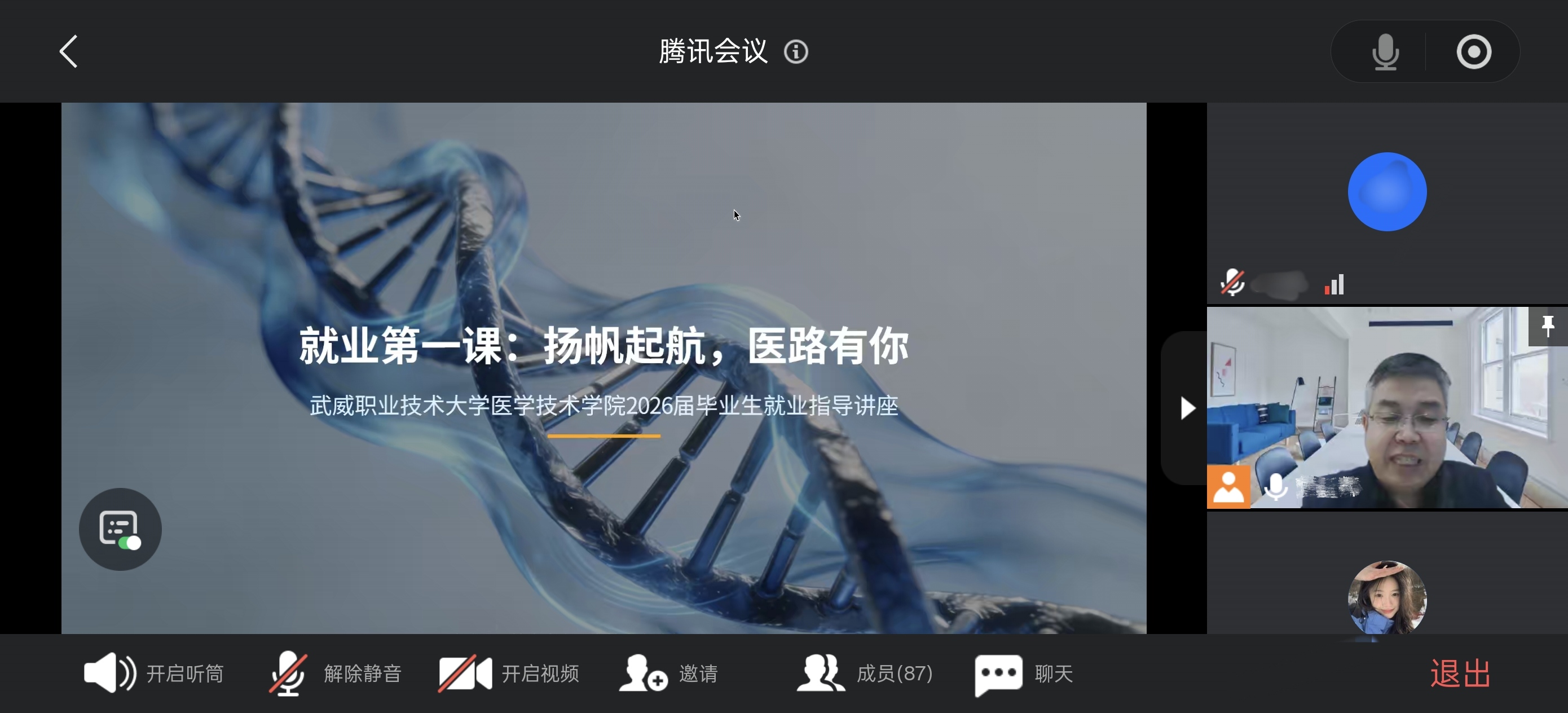 此次線上講座緊貼畢業(yè)生就業(yè)需求,內(nèi)容詳實(shí)、指導(dǎo)性強(qiáng),有效緩解了同學(xué)們實(shí)習(xí)求職的焦慮情緒,為大家理清了就業(yè)思路、明確了發(fā)展方向。下一步,醫(yī)學(xué)技術(shù)學(xué)院將持續(xù)推進(jìn)“暖心導(dǎo)航”就業(yè)指導(dǎo)系列活動(dòng),做好全流程就業(yè)服務(wù),為2026屆畢業(yè)生順利就業(yè)保駕護(hù)航,助力學(xué)子們?cè)卺t(yī)療衛(wèi)生事業(yè)的舞臺(tái)上揚(yáng)帆起航。